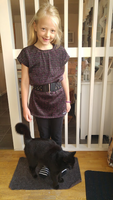 Tiril fick en glittertopp/tunika att ha över ett linne. Enkel modell med holkärmar. Jag grejade eget mönster.